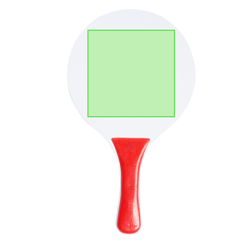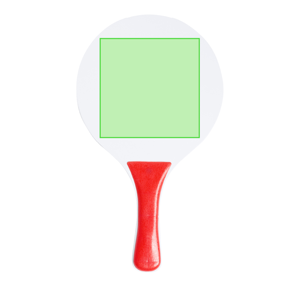 Beachball-Set mit zwei Schlägern aus Naturholz in Weiß. Mit verstärktem Griff in verschiedenen lebendigen Farben. Präsentiert in einer Netztasche mit Ball in passender Farbe.