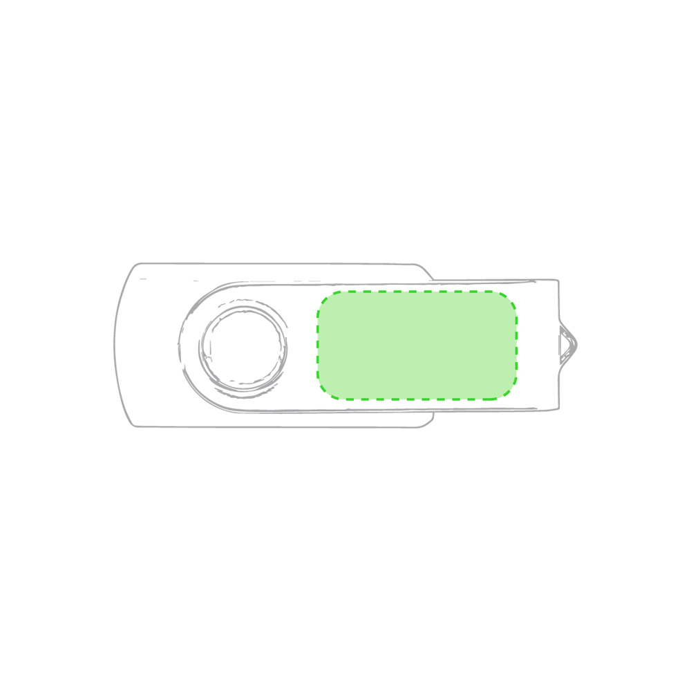 USB-Stick mit 16 GB Kapazität. Gehäuse aus Bambus mit Metallclip und Drehmechanismus. Präsentiert in einer individuellen Schachtel aus Recyclingkarton.